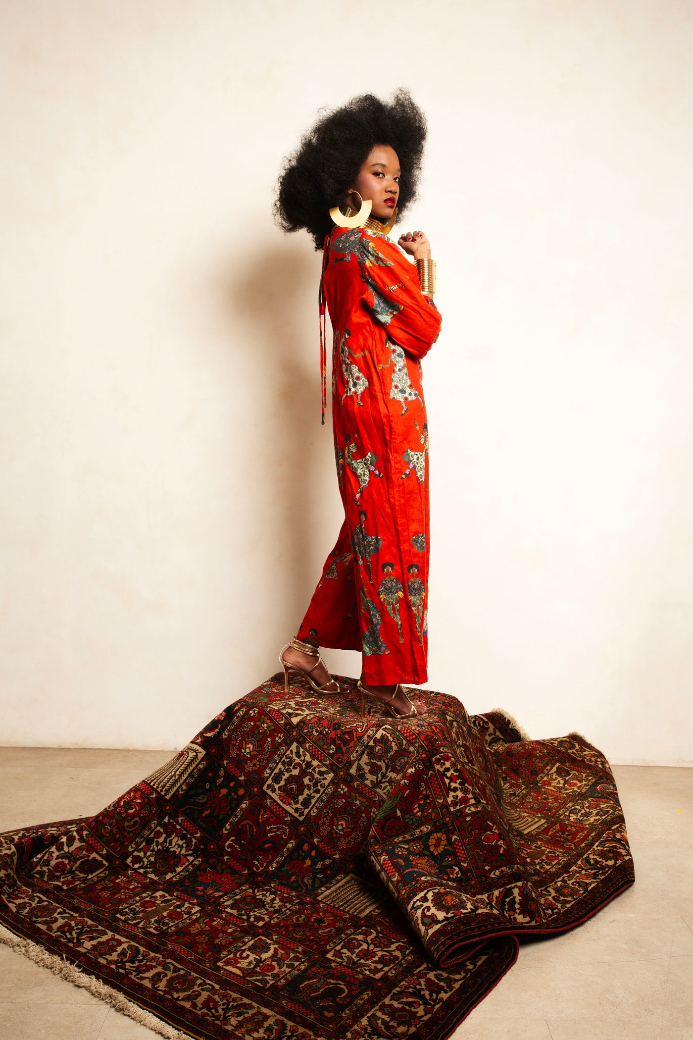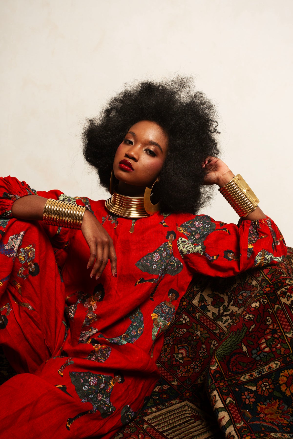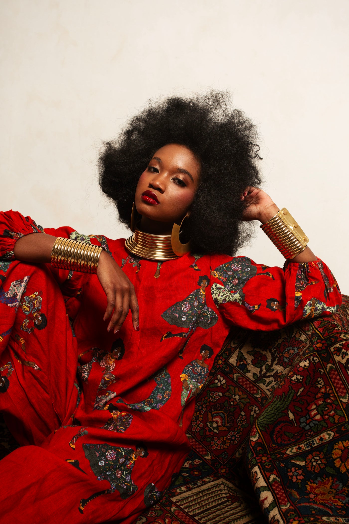 The Lady Anele Jumpsuit is a modern statement piece with a relaxed yet tailored silhouette. Featuring voluminous puffy sleeves paired with a loose waistline and fluid wide-leg trousers, it strikes the perfect balance between drama and effortless elegance. Versatile and timeless, it transitions seamlessly from day to night with sophisticated ease.