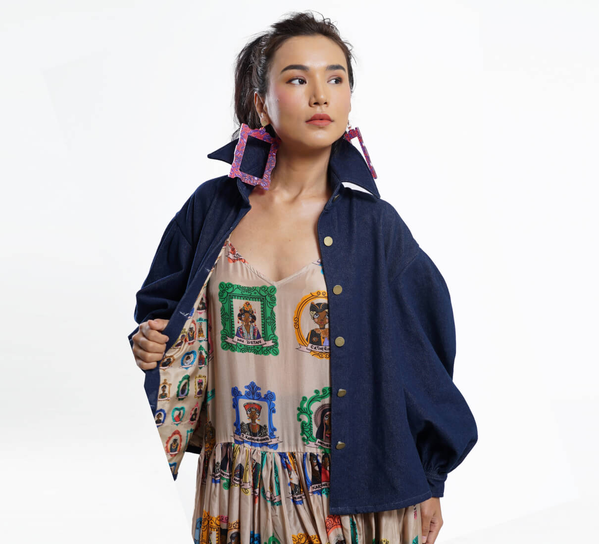 Where timeless art meets modern grace, Lady Serena is a statement of strength and soul. Crafted in rich, structured denim, this jacket features dramatic balloon sleeves for a bold, feminine silhouette.