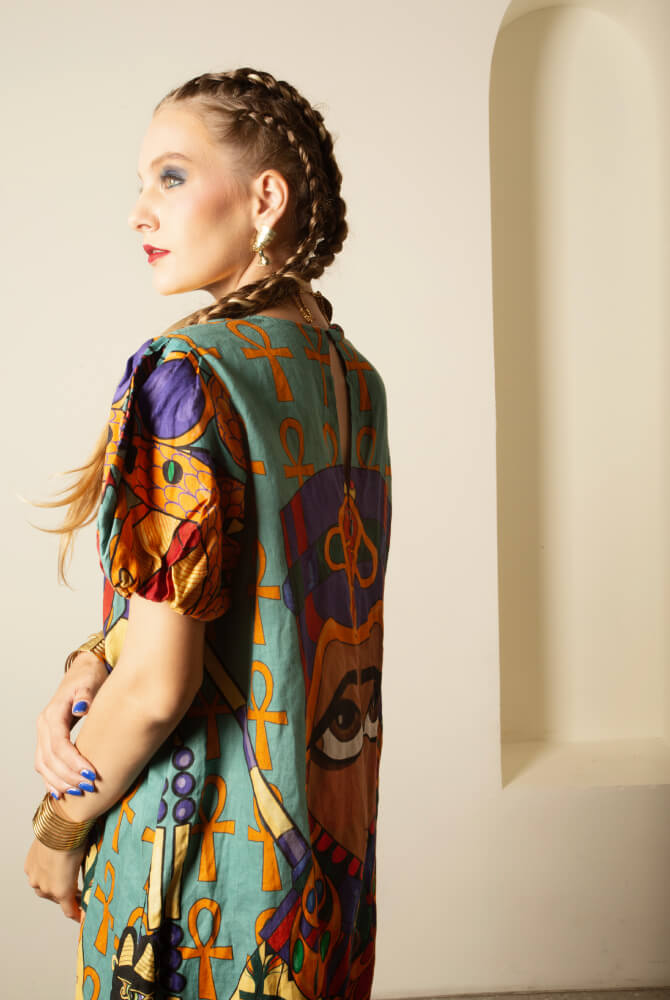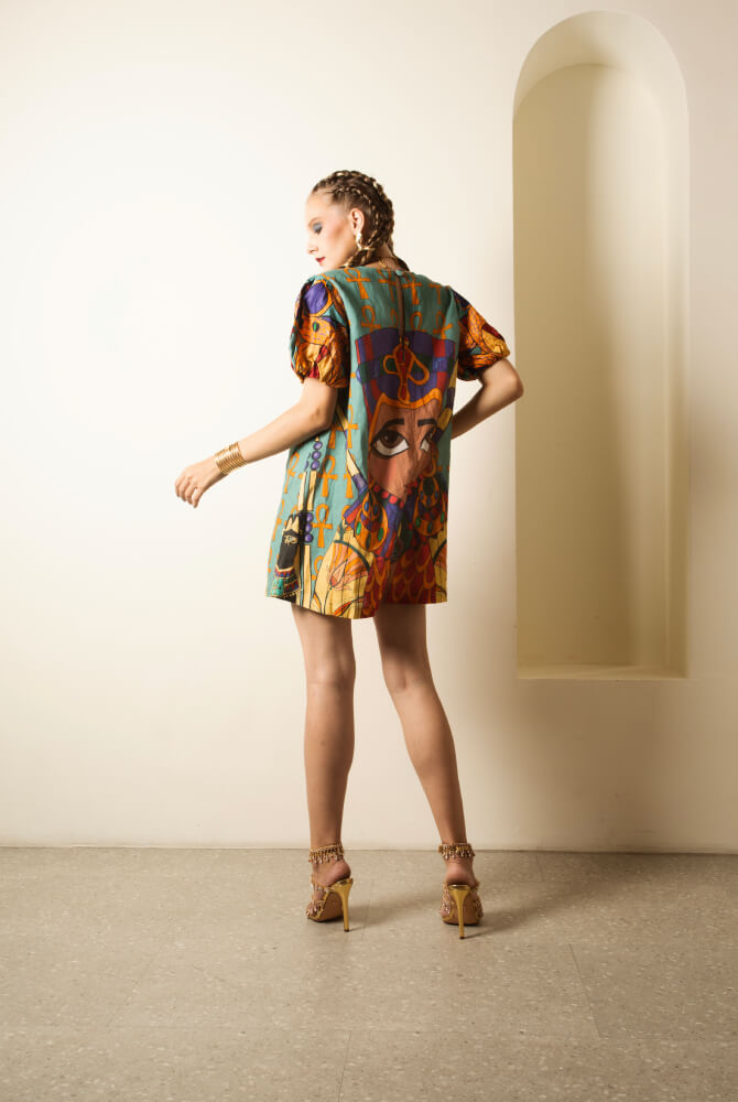 A bold statement piece from the Queen Nefertiti collection, the Lady Amari Playsuit celebrates expressive femininity through art and colour. Designed with a relaxed A-line silhouette and soft puff sleeves, this playsuit blends comfort with impact, allowing the hand-illustrated artwork to take centre stage. Effortless yet powerful, it’s made for women who dress with confidence and intention.
