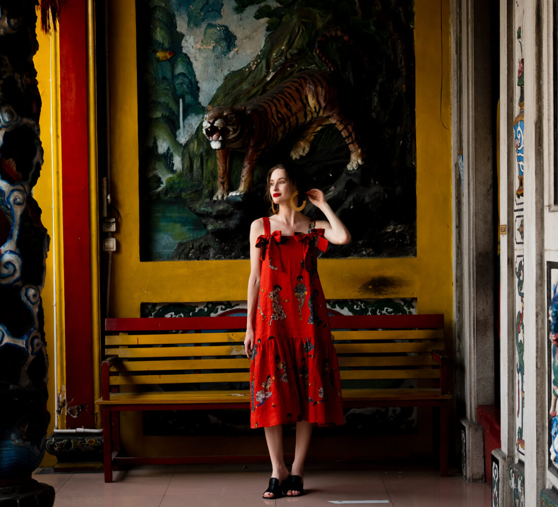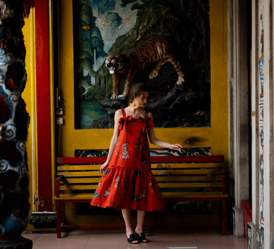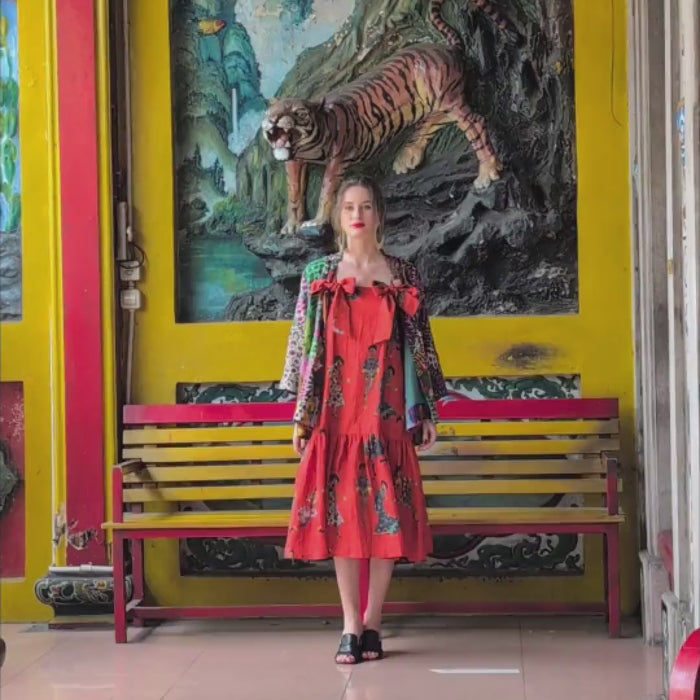 A striking midi-length dress designed to make an entrance. Featuring a dramatic oversized bow as its statement detail, the silhouette is clean and elegant, with a fitted bodice that flows into a graceful midi skirt. The bow adds sculptural dimension while the mid-calf hem balances drama with timeless sophistication. Ideal for special occasions where confidence and femininity shine.