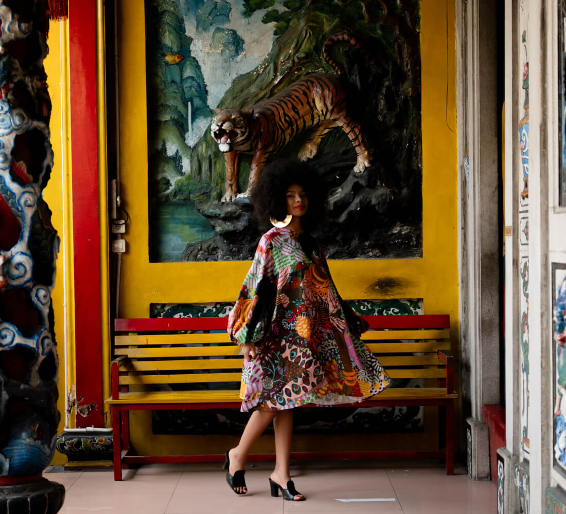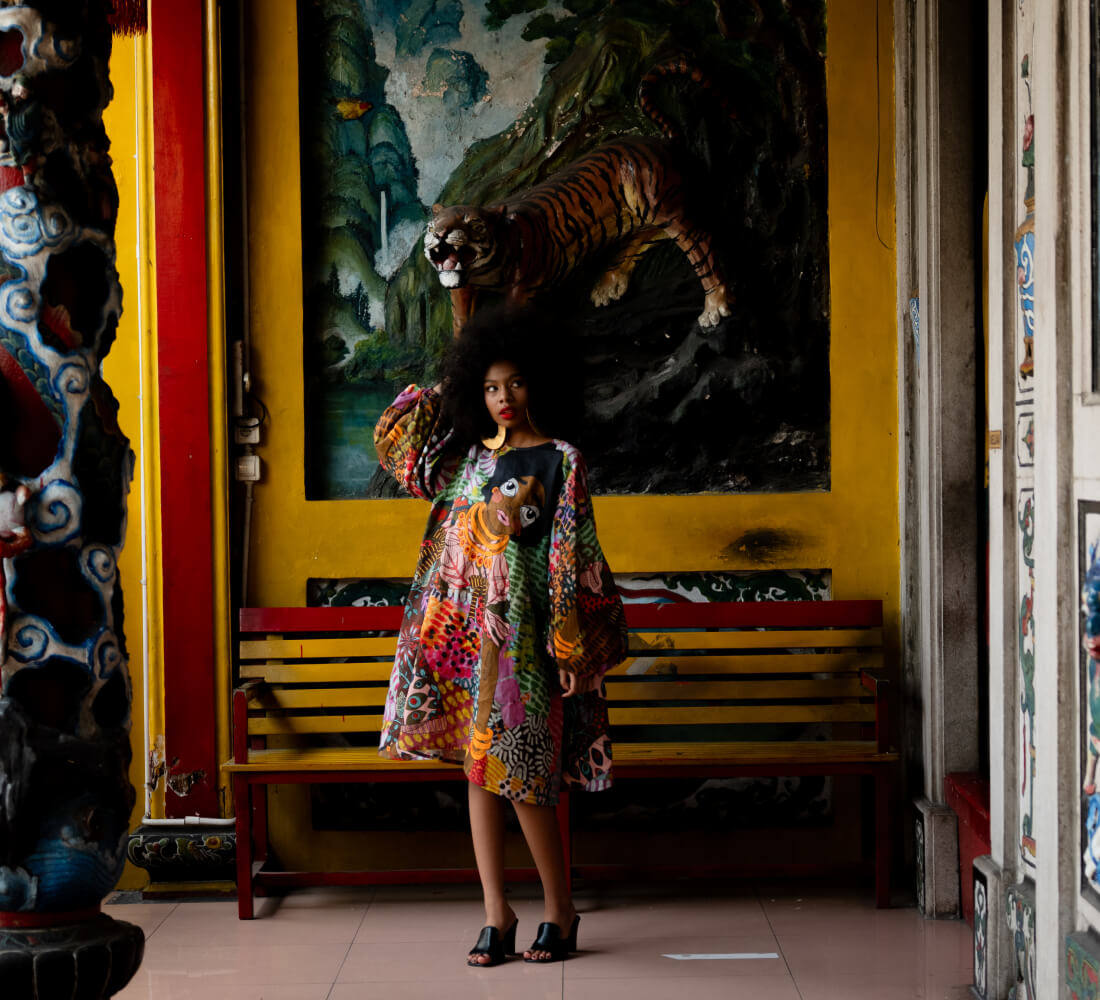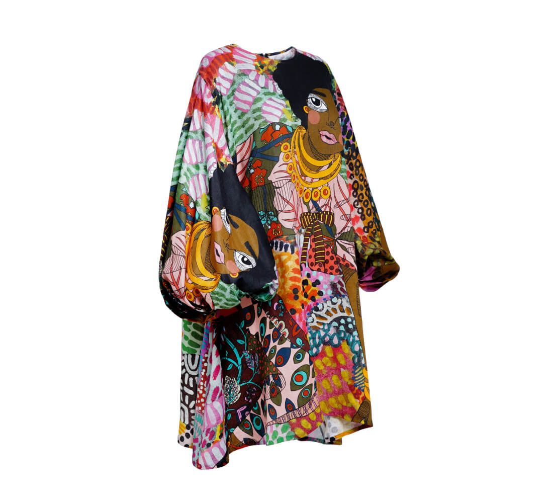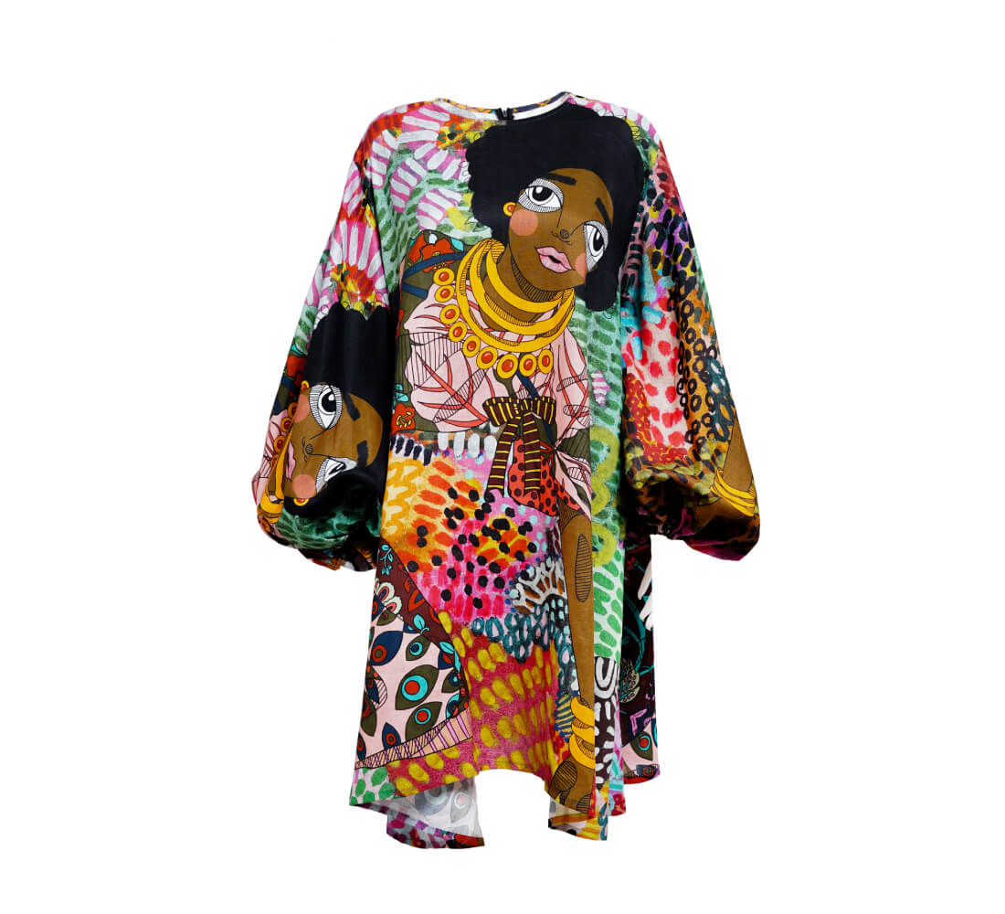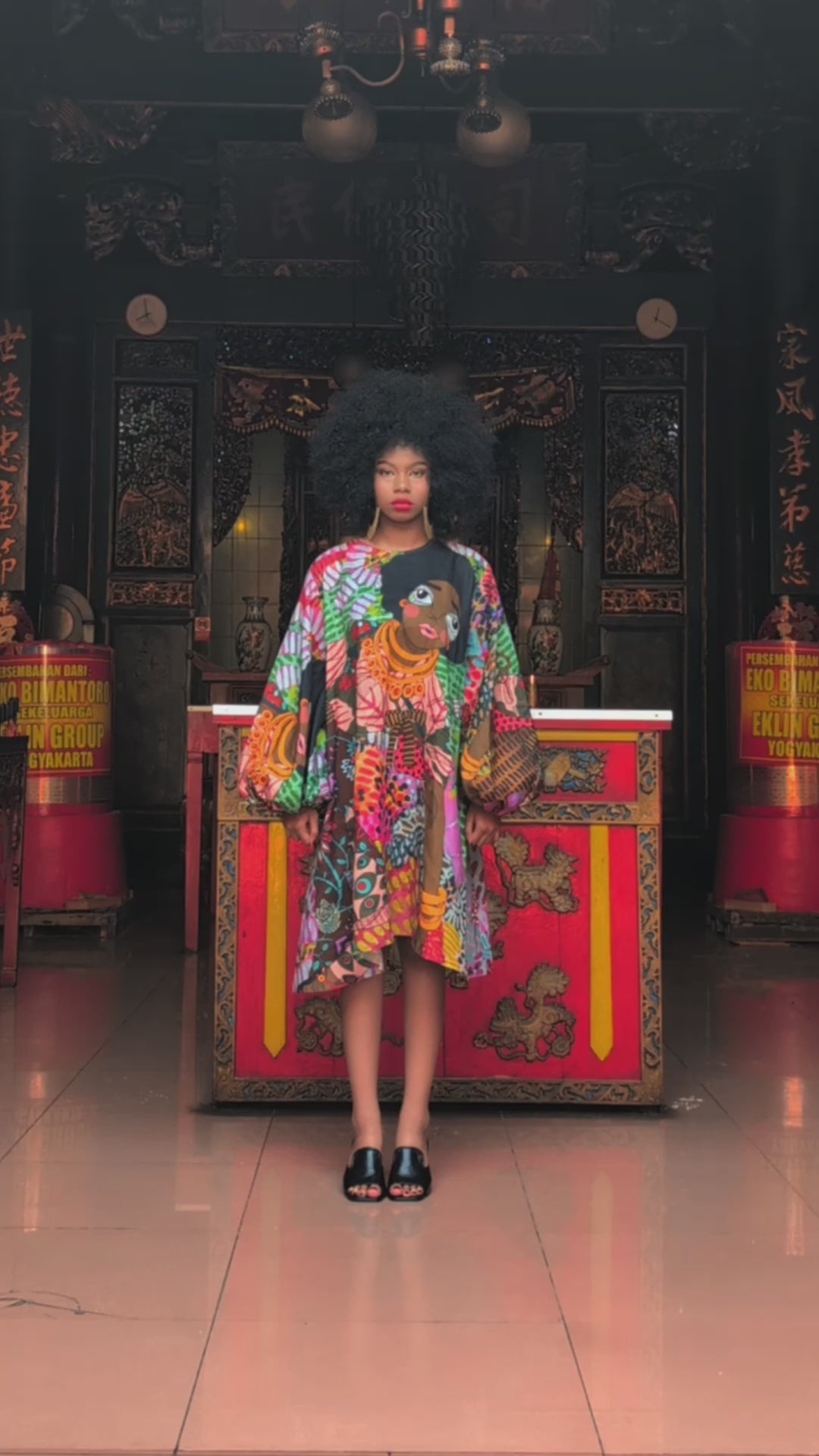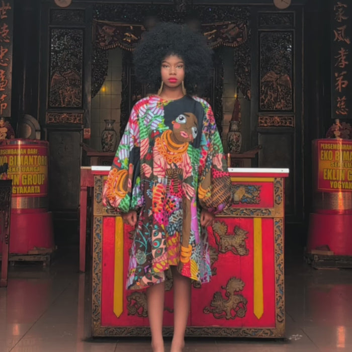 A loose A-line mini dress with playful balloon sleeves. Its relaxed silhouette flatters effortlessly, blending comfort and elegance. Style it casually with sneakers for daytime ease, or elevate with heels and statement accessories for an evening look.